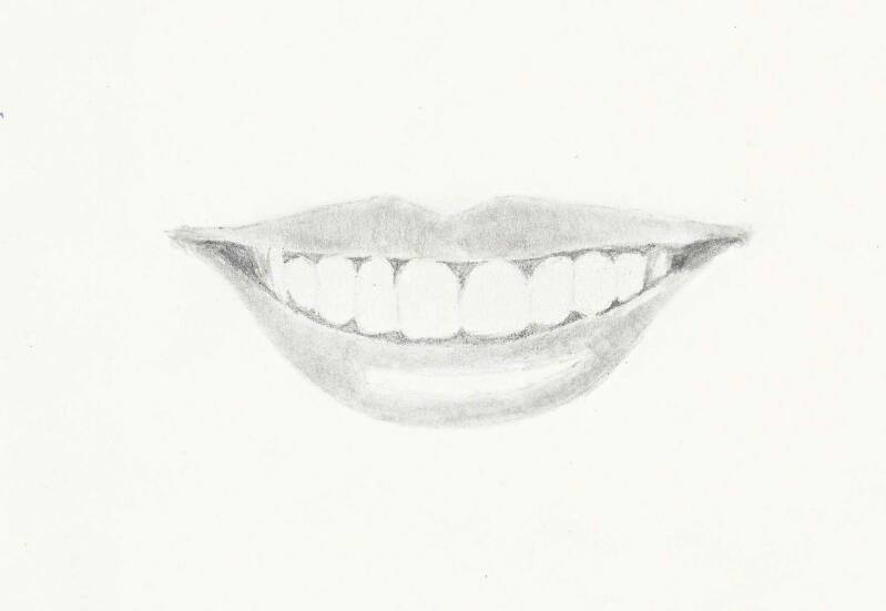 À remarquer. Plus les dents sont proches des coins de la bouche, plus elles sont ombrées.